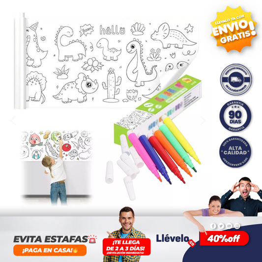 CreaRollo® Rollo De Papel Adhesivo Dibujos Colorea
