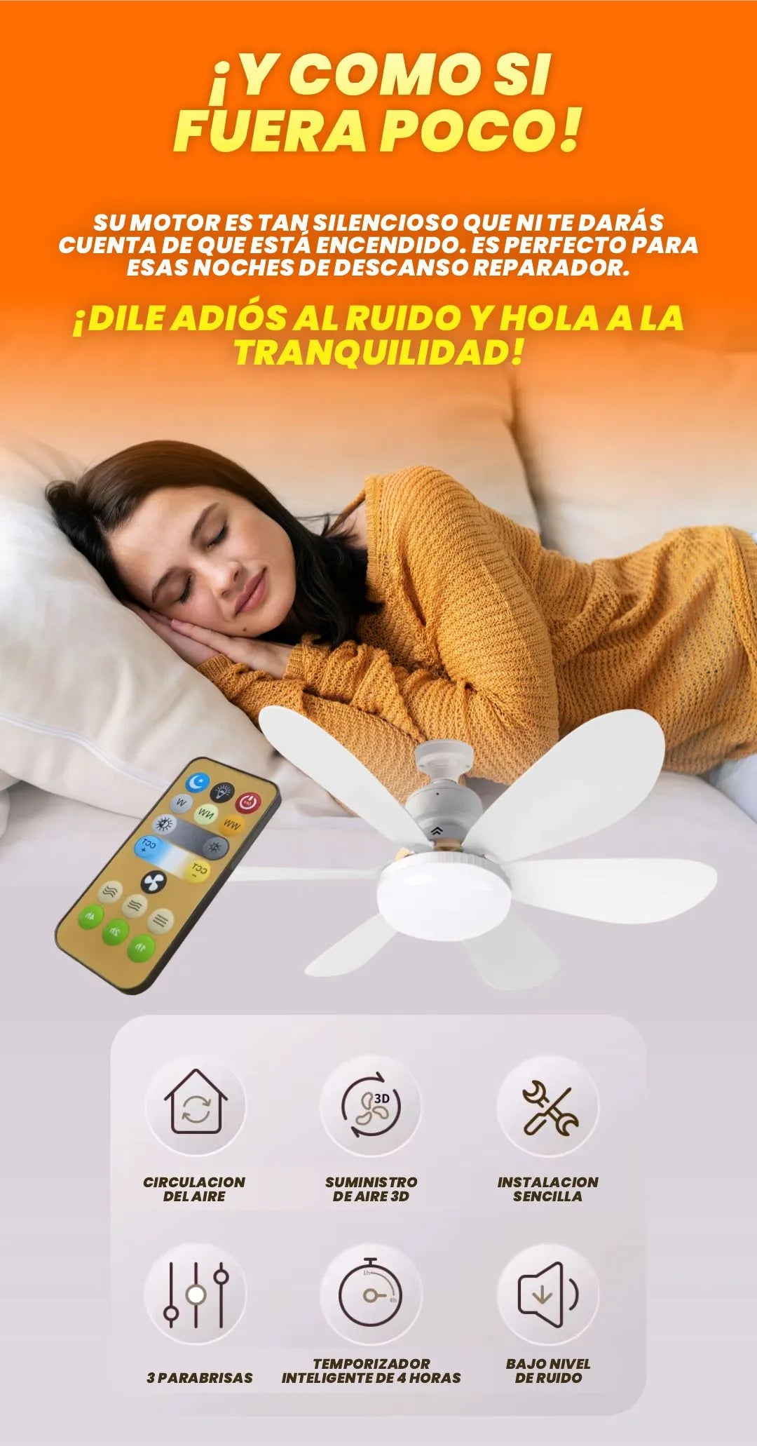 Sí, este ventilador está equipado con un motor silencioso de alta eficiencia que minimiza el ruido durante su funcionamiento, proporcionando un ambiente tranquilo ideal para el descanso o el trabajo.