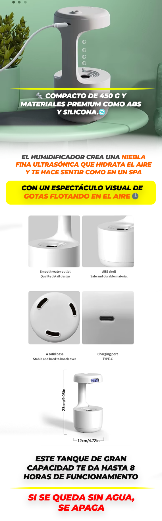 Un tanque de 600 ml dura aproximadamente 8 horas de humidificación continua.