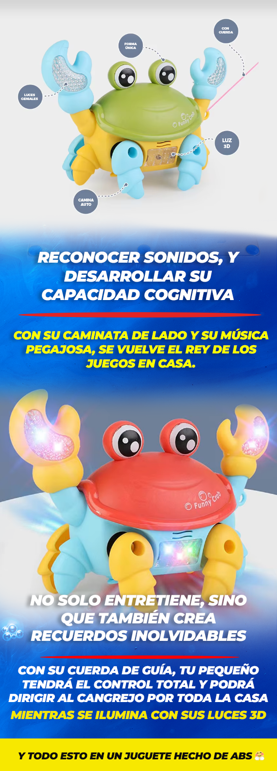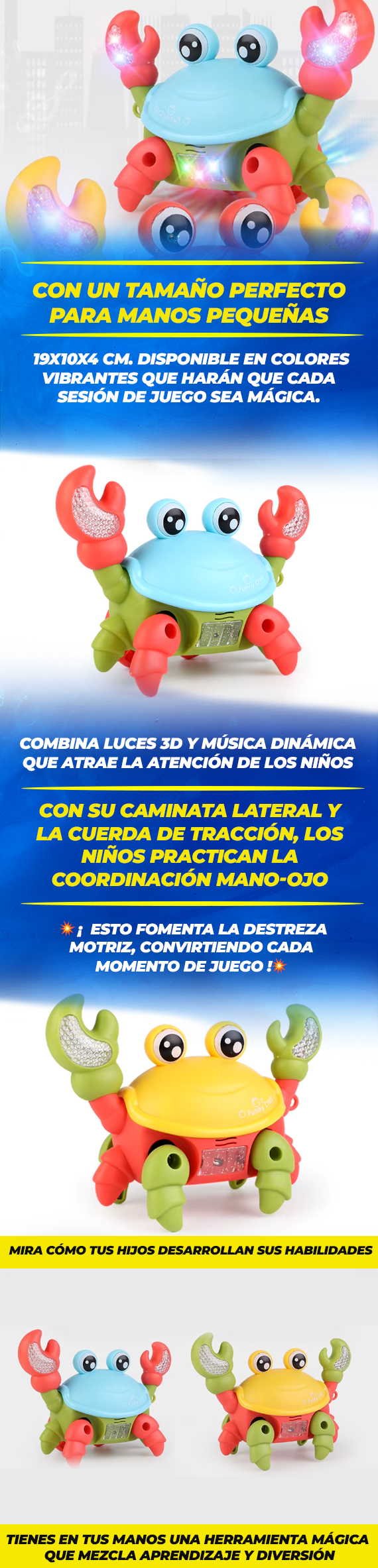 El cangrejo emite música dinámica además de sus luces 3D, creando una experiencia de juego más divertida y estimulante.