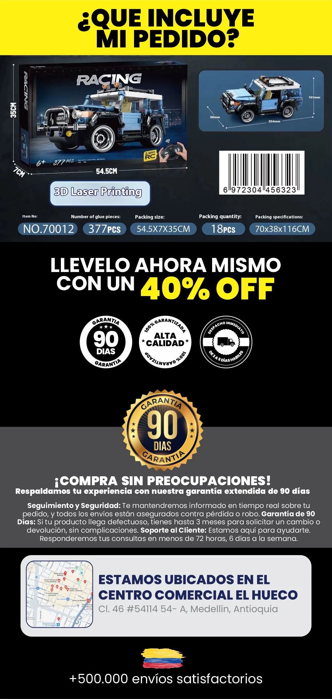 - Sí, una vez ensamblado, el carro tiene un rendimiento excelente y el control remoto tiene un alcance amplio.