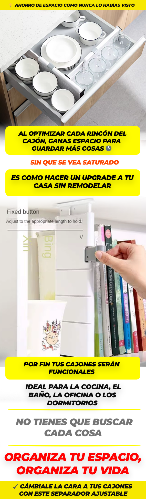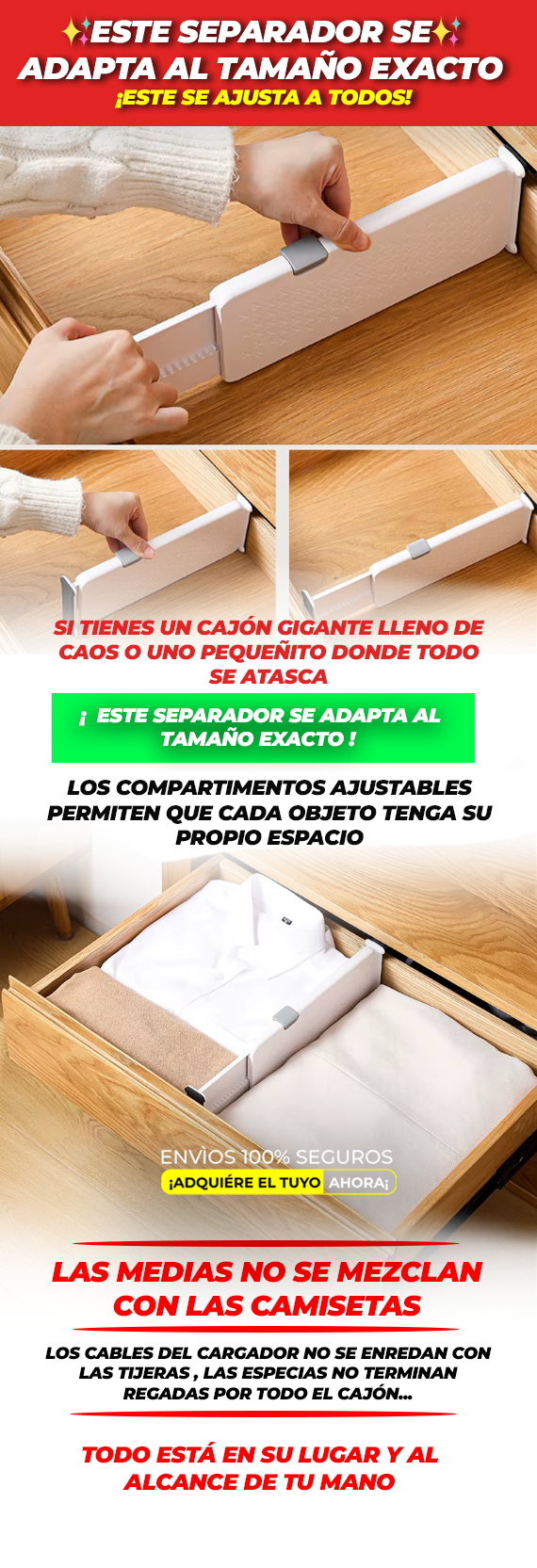 Sí, el separador es modular y se ajusta perfectamente a cajones grandes, medianos y pequeños. ¡Perfecto para todo tipo de espacios!