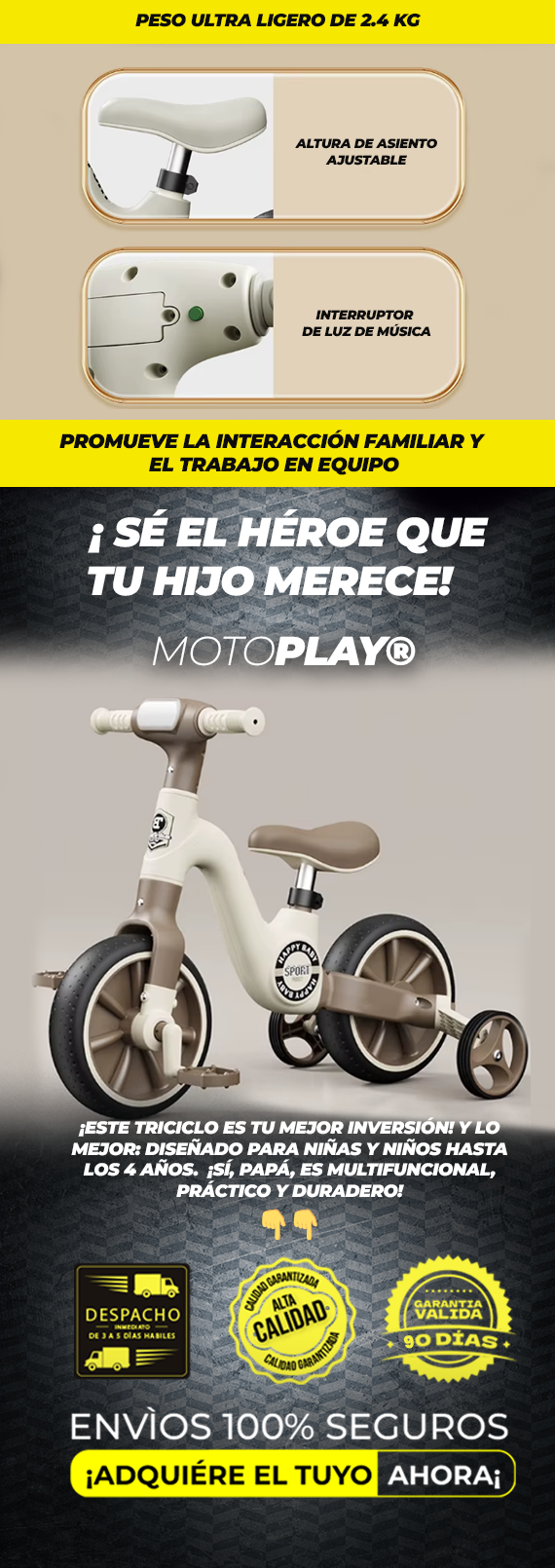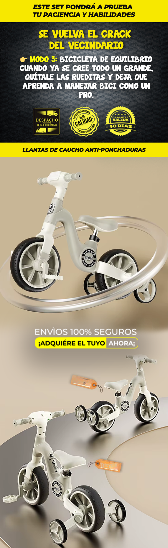 ¡Claro! Su diseño de 3 ruedas ofrece estabilidad, y las llantas de caucho aseguran un paseo seguro.