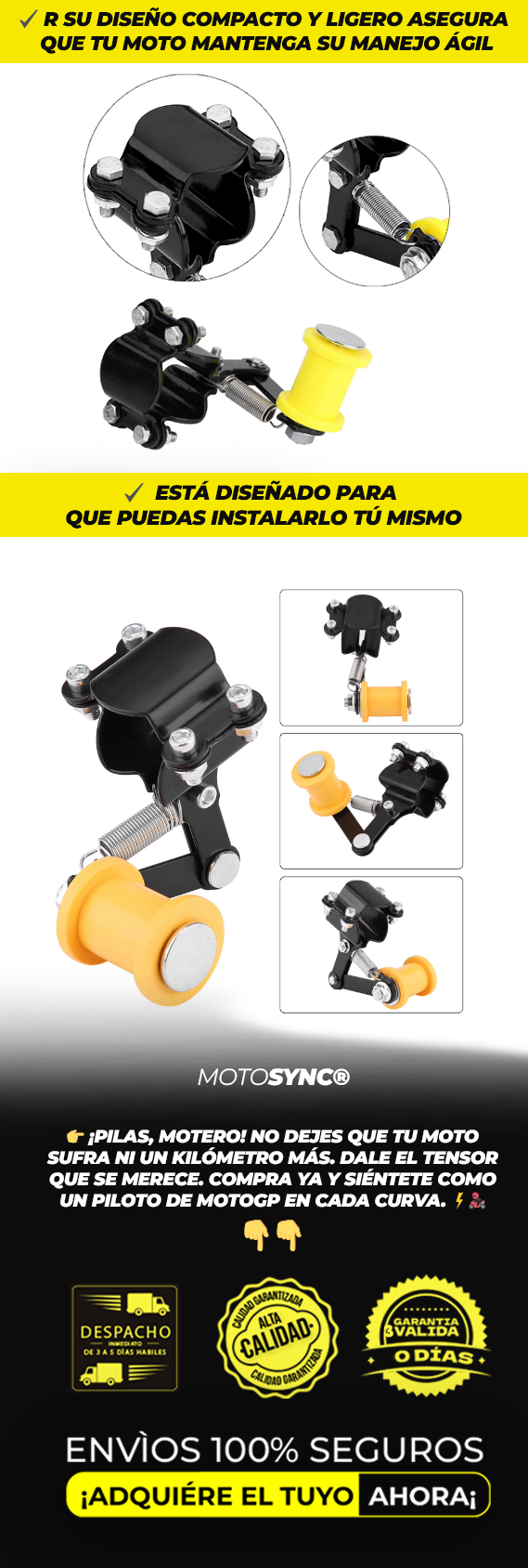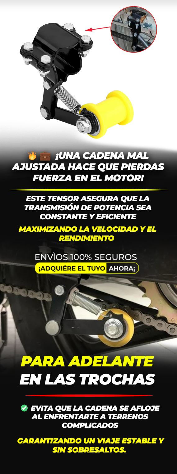 ✔️ Su sistema automático asegura que la cadena esté siempre en la tensión perfecta. Solo instálalo y despreocúpate.