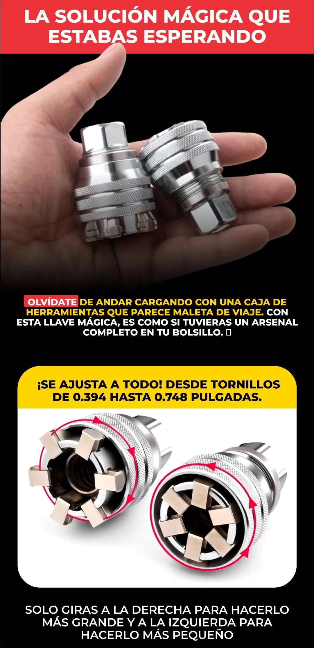 ¡Sí! Desde tornillos pequeños hasta los más grandes, ¡esta llave es todo terreno! Solo ajusta el tamaño según lo necesites.