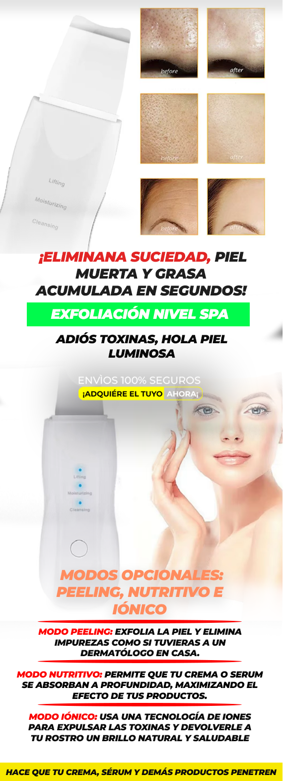 Sí, la Espátula Ultrasónica Facial 8815 está diseñada para ser suave y eficaz, incluso en pieles sensibles.