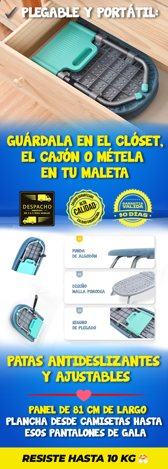 ¡Claro! Solo la sacas, ajustas las patas y ¡a planchar!