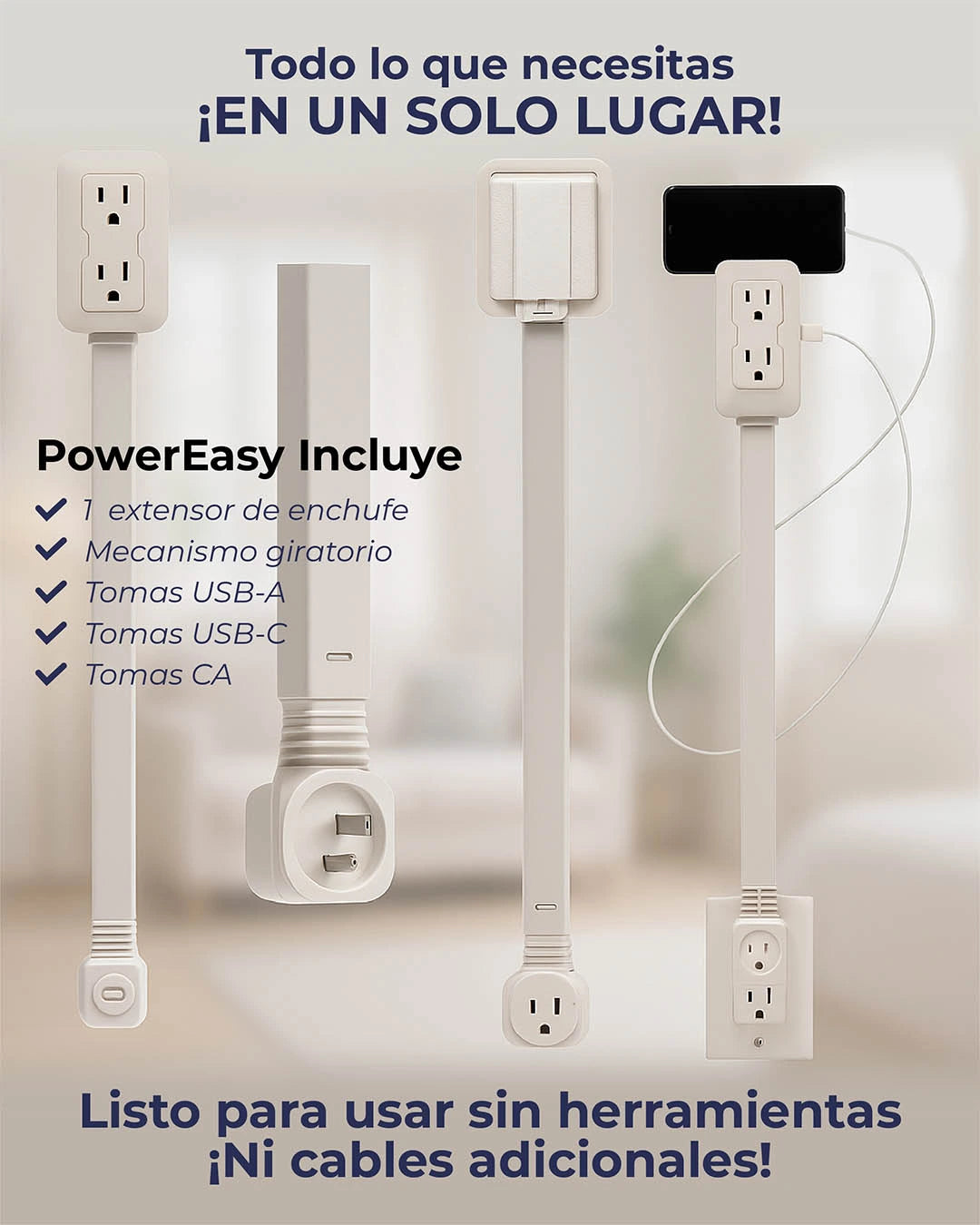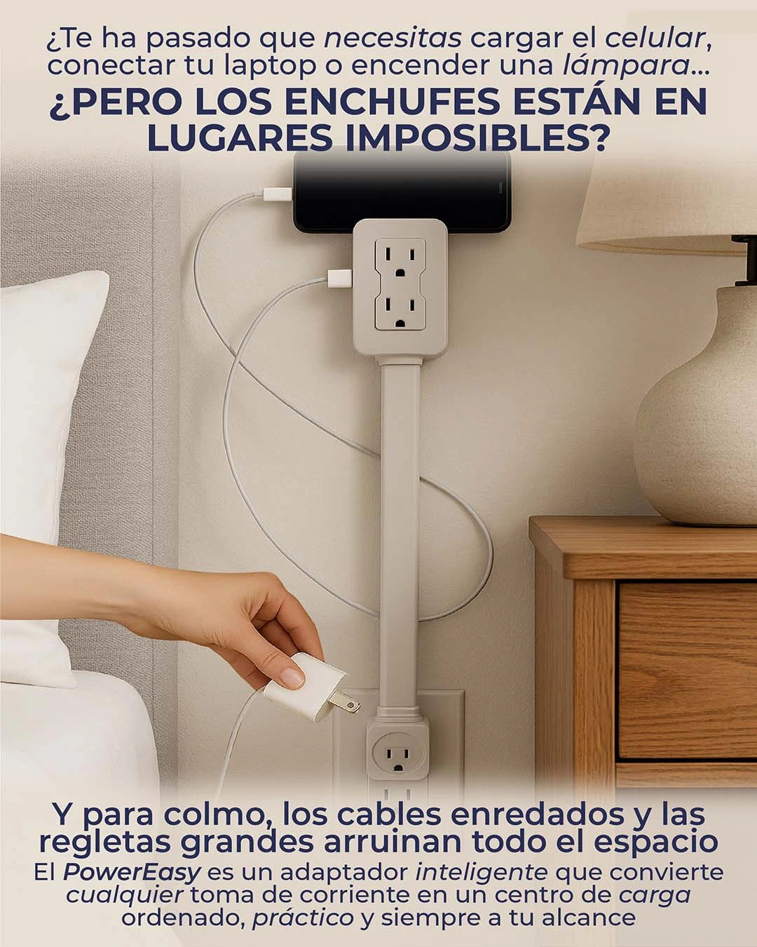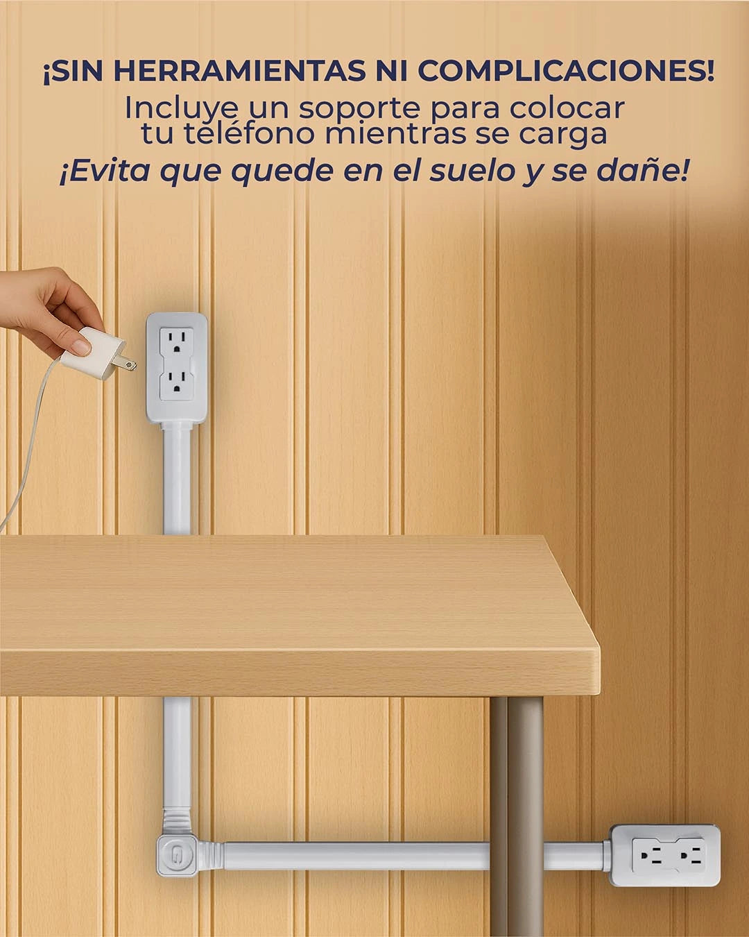 No. Este extensor llega listo para usar. Solo conéctalo a una toma de corriente existente y ajusta su brazo extensible y base giratoria a la posición que necesites. No requiere perforaciones ni montaje especial.