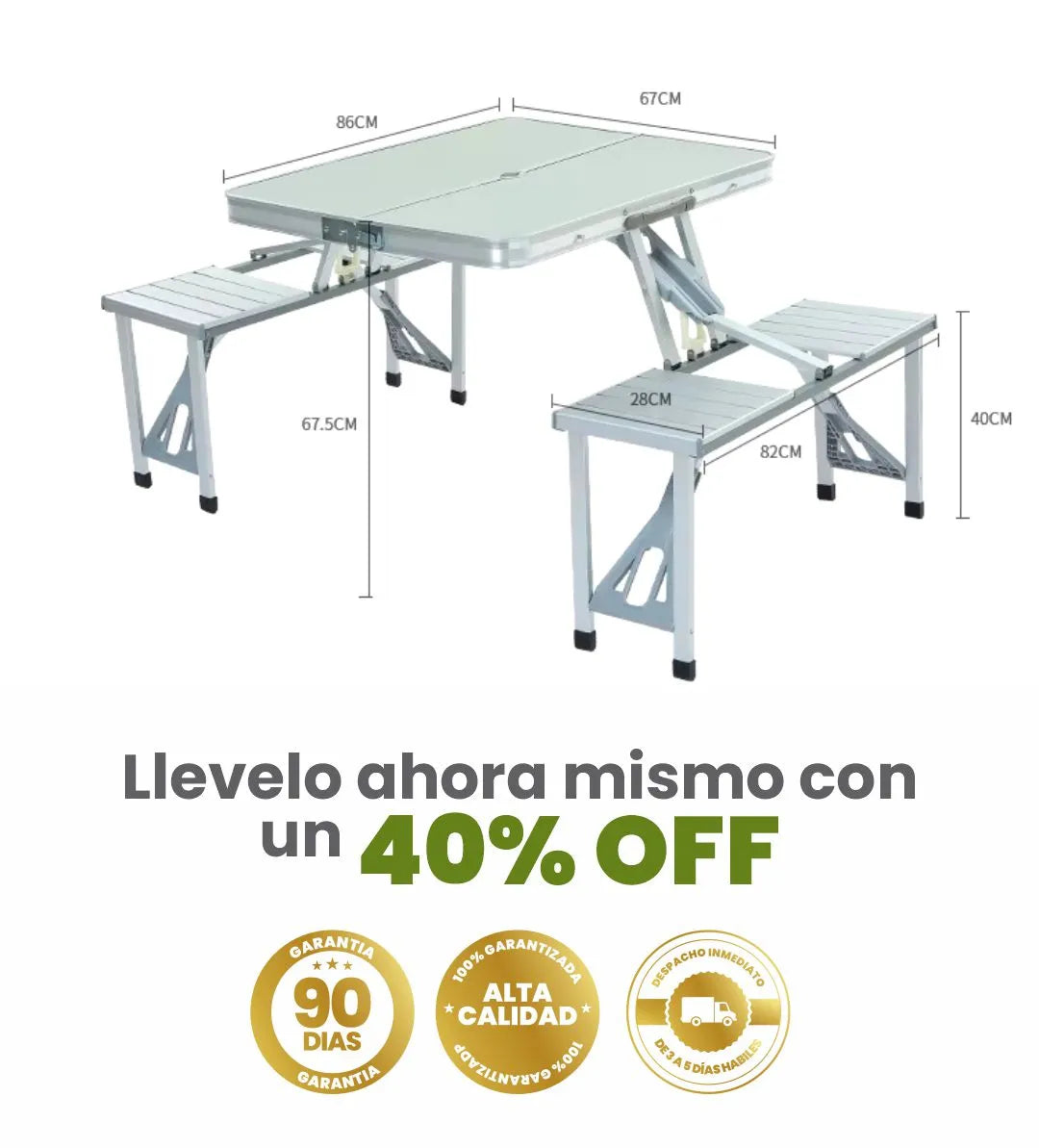 La mesa está fabricada con materiales resistentes y duraderos que soportan el uso al aire libre. Además, es fácil de limpiar, así que no tienes que preocuparte por manchas después de un picnic.
