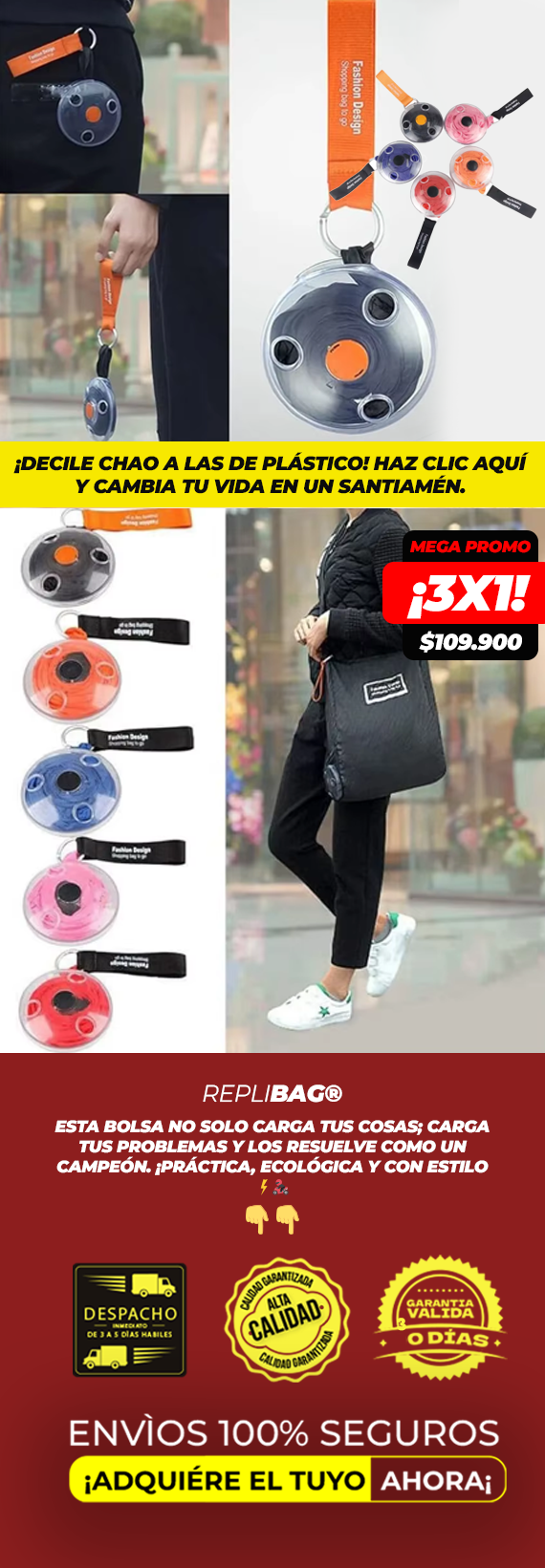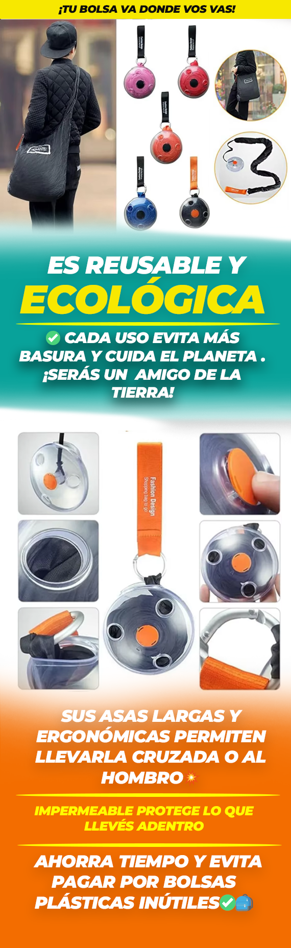 La bolsa soporta hasta 10 kg de peso, suficiente para tus compras o artículos personales.