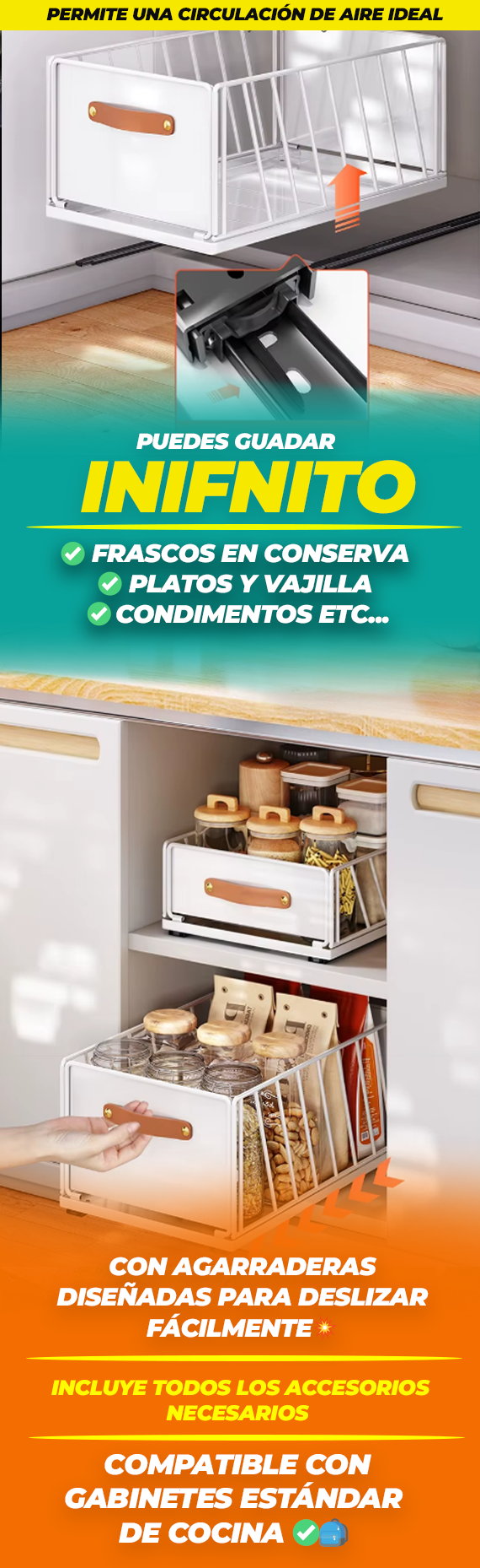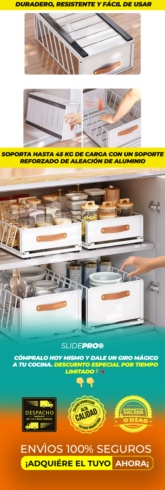 Hasta 45 kg, perfecto para ollas y utensilios pesados.