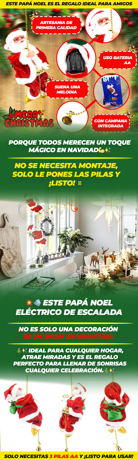 Requiere 3 pilas AA que no están incluidas.