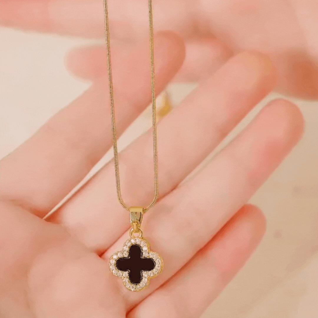 Significa que el dije tiene un acabado negro en ambas caras, asegurando que siempre luzca elegante sin importar cómo se gire.
