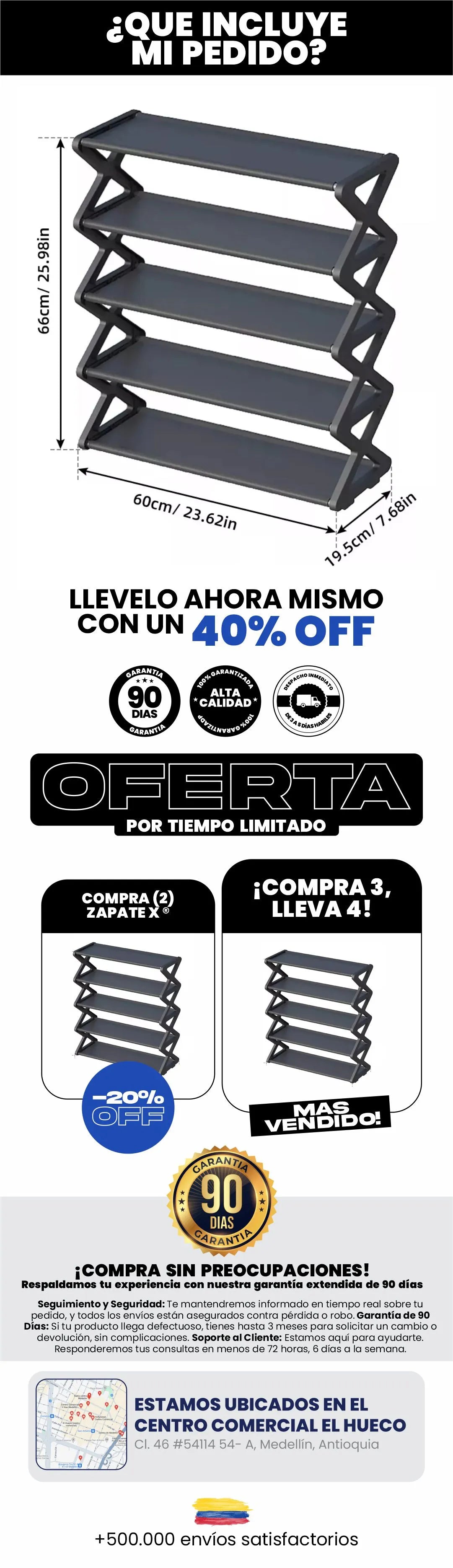 Dependiendo del tamaño del calzado, puede almacenar hasta 10 pares.